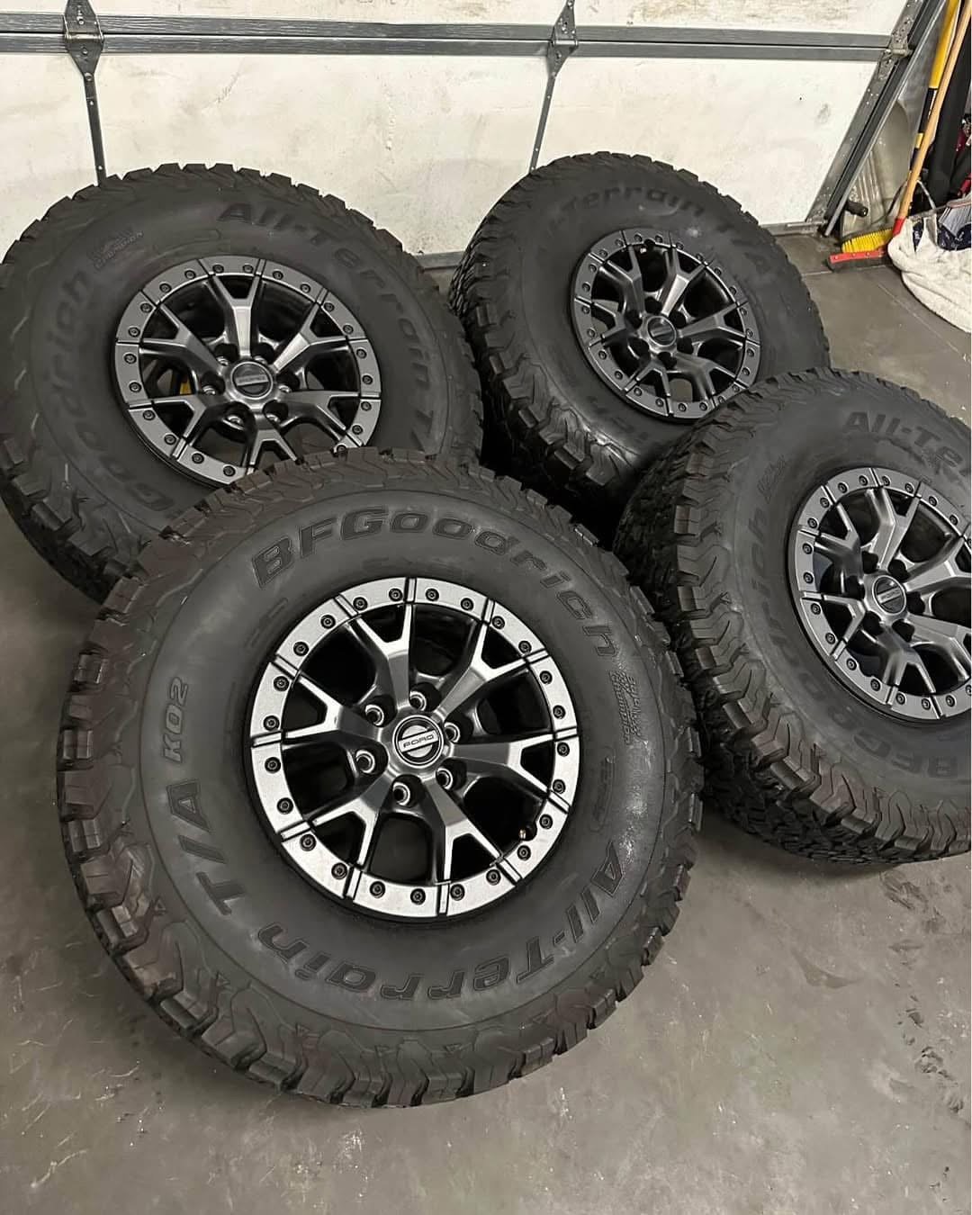 Tires are 37×12.50r17 BFGoodrich KO2, load range C, top of the line, amazing performing tires.