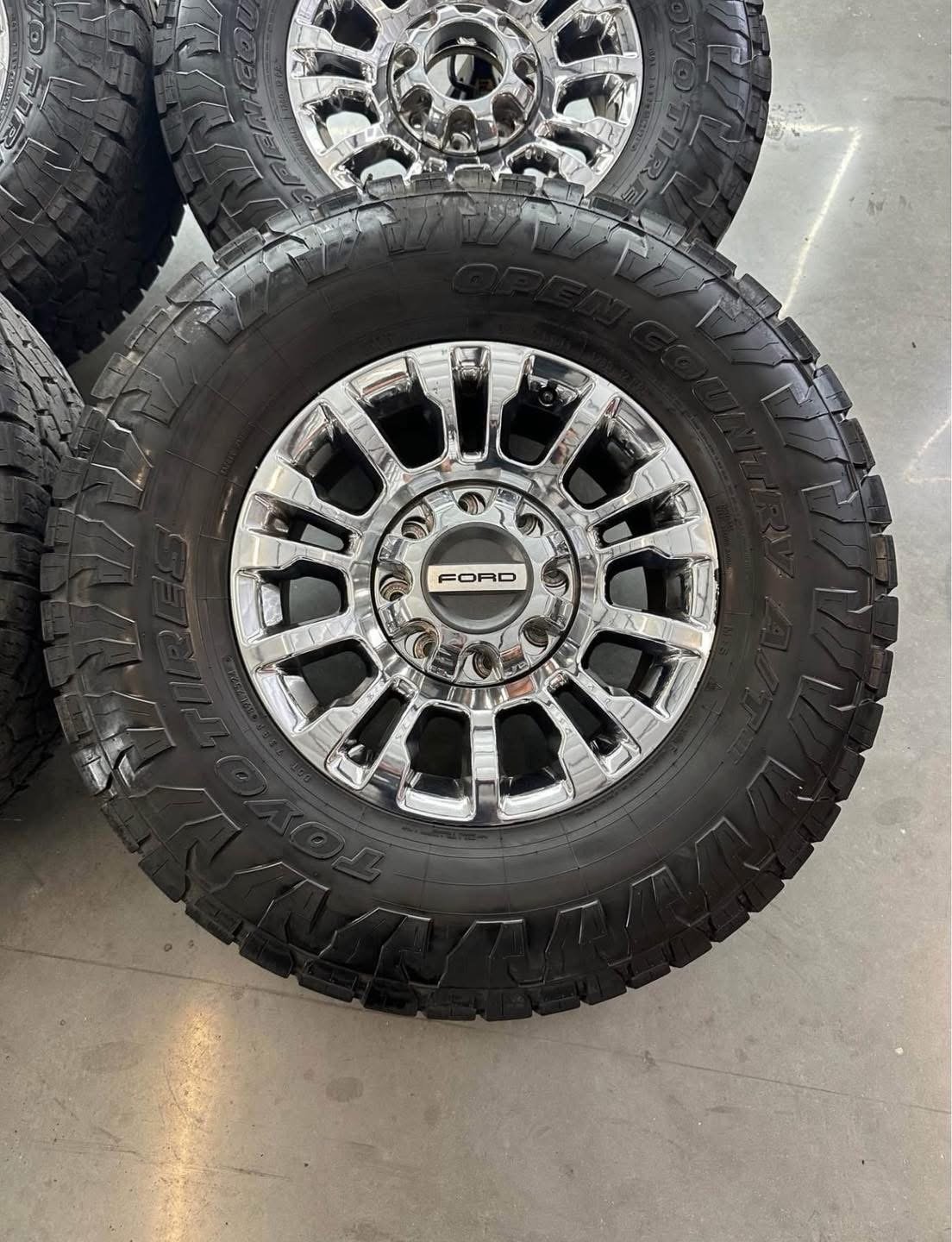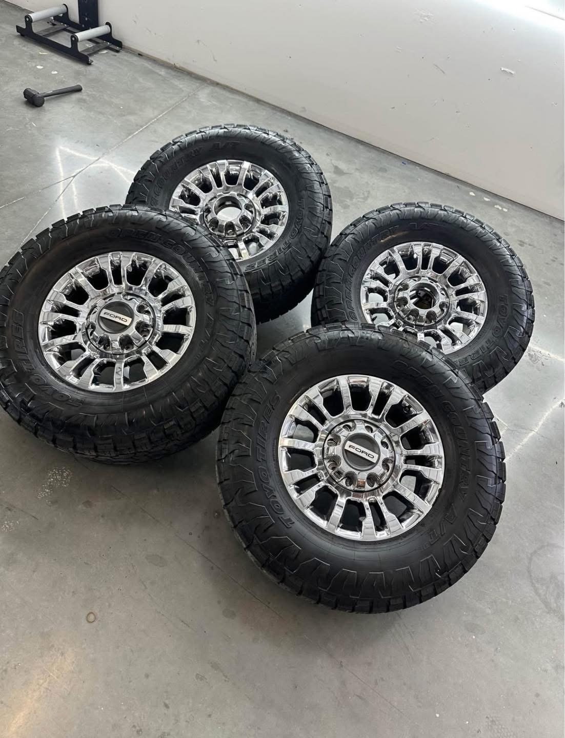 Wheels are 18in OEM wheels off a 2022 ford f350 king ranch package. Hard to find wheels, especially in this good of shape. No curb rags or major damage on them. All the center caps are also included.
