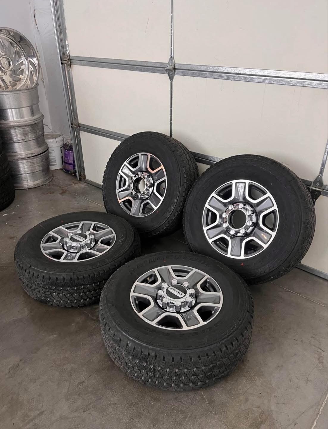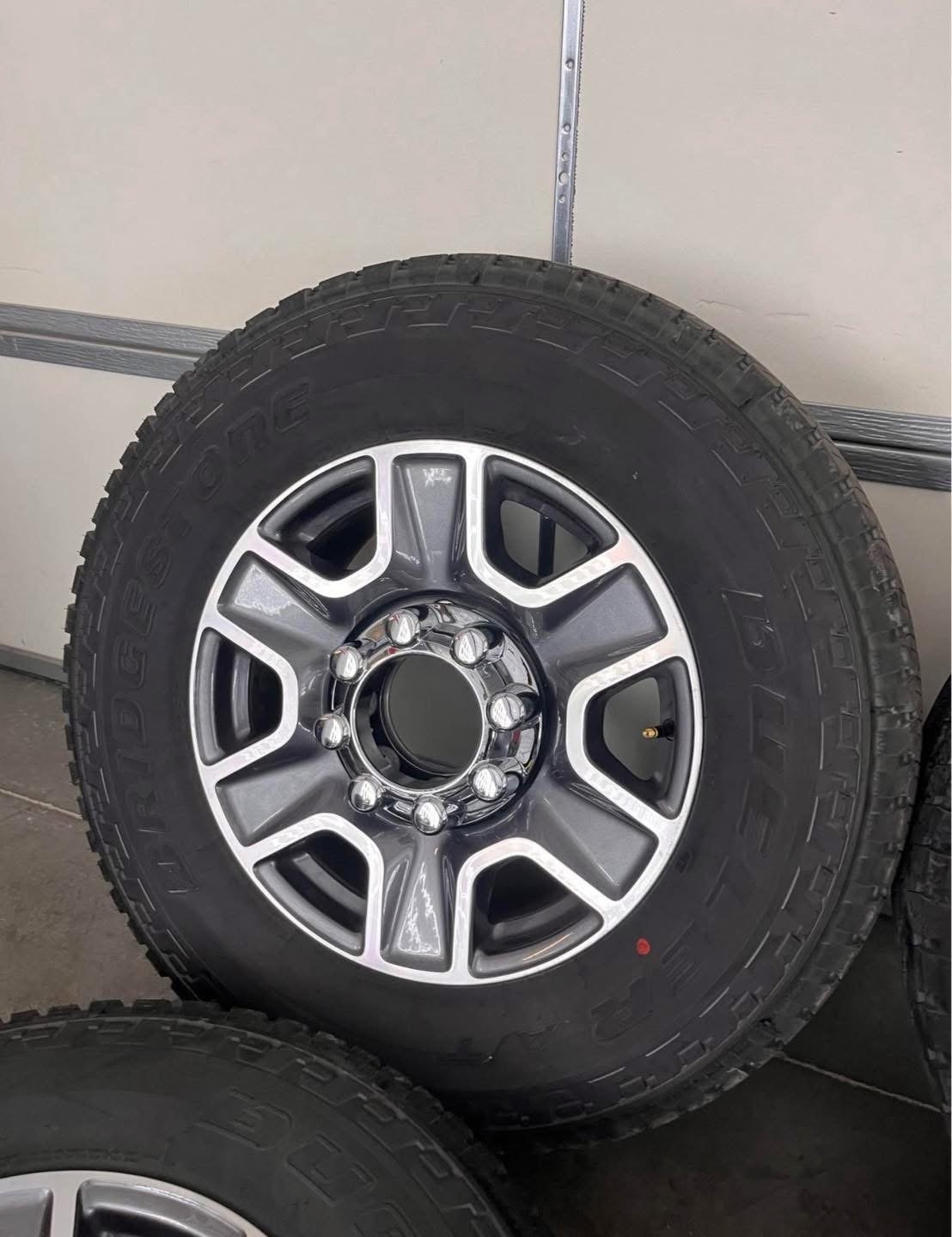 Wheels are 20in OEM wheels off a 2025 ford f350 superduty. Wheels are in perfect shape, no curb rash, dings ordamage on them. All the center caps are also included and in Great shape as well. I also have the lug nuts if you want them.