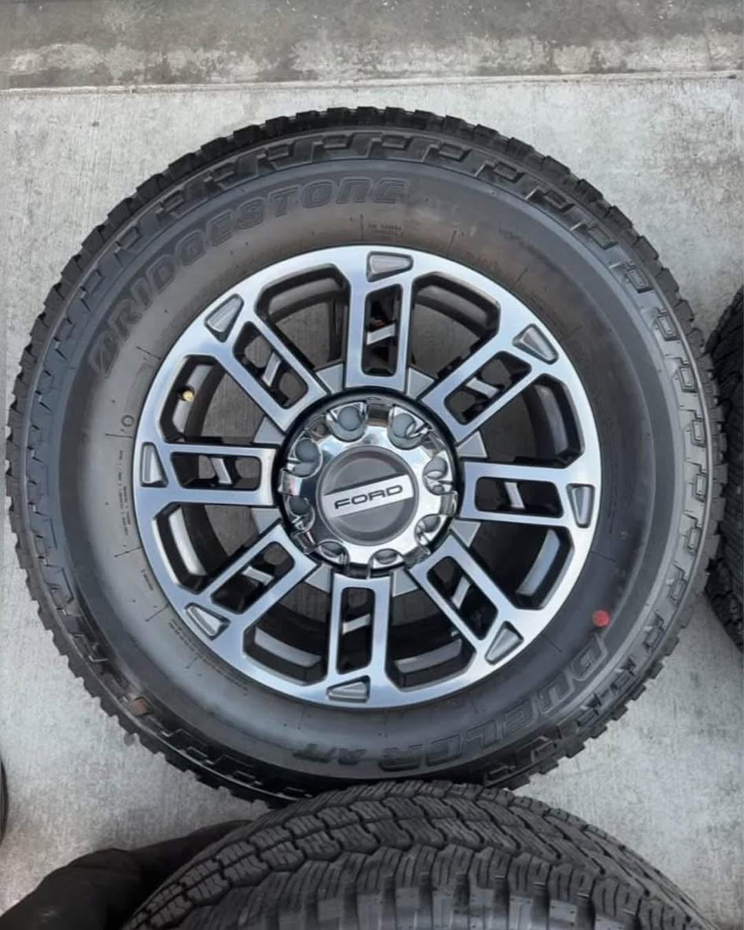ShopFord F150 F250 F350 F450 F55020” OEM ford f350 limited package wheels 275/65/20 Bridgestone dueler tires Wheels are 20” OEM wheels off a 2024 ford f350 limited package.
