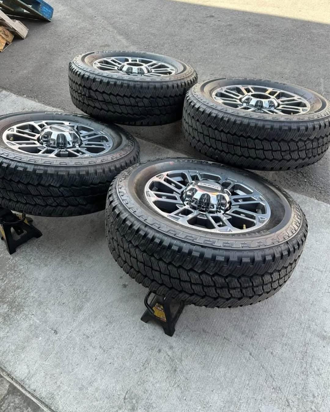Wheels are 20” OEM wheels off a 2024 ford f350 limited package. Very hard to find wheels, especially anywhere near this price point. Wheels are in amazing condition, no curb rash, dings or major damage on them. All center caps are also included and in perfect condition as well. I also have lug nuts if you would like.