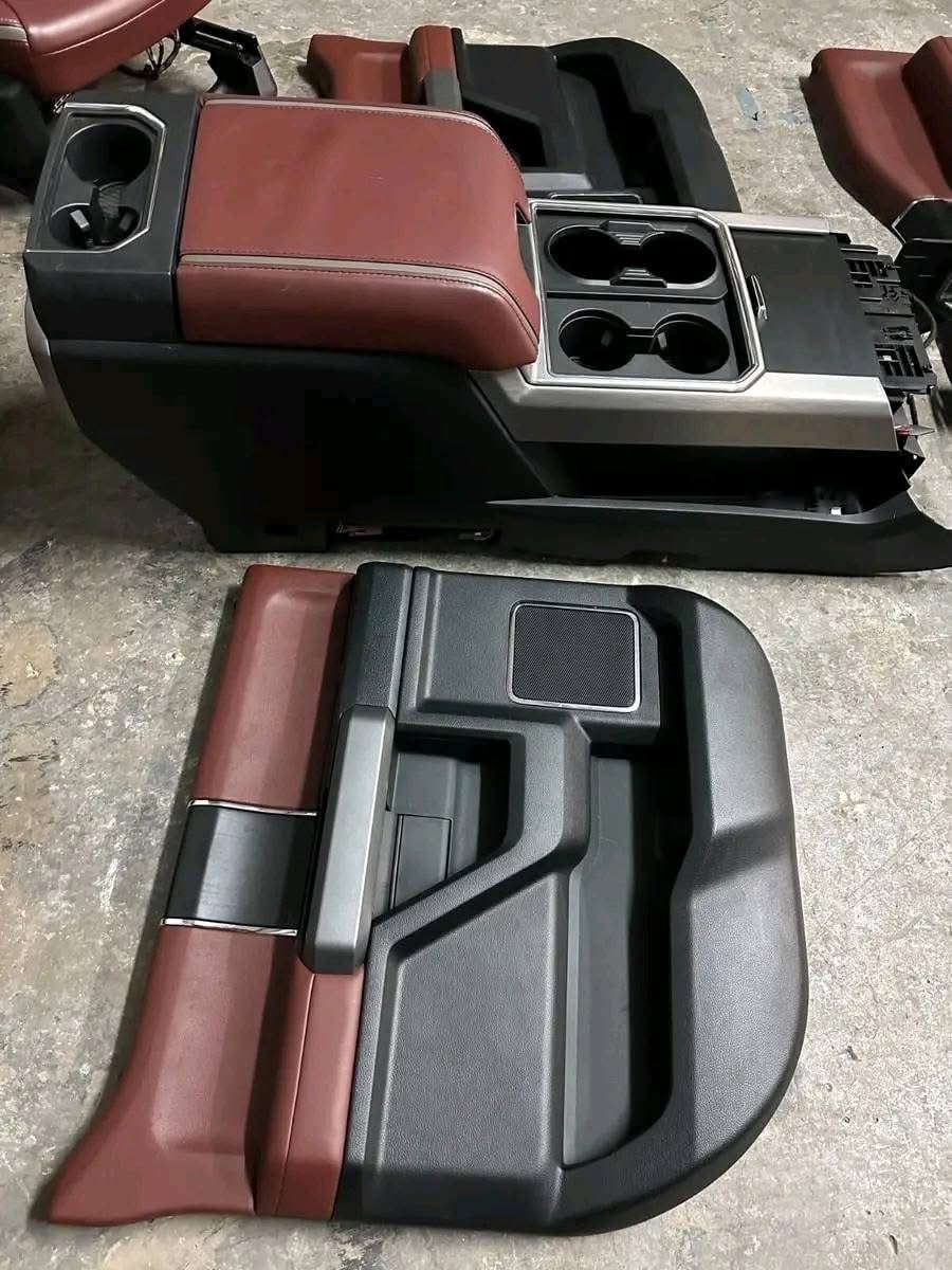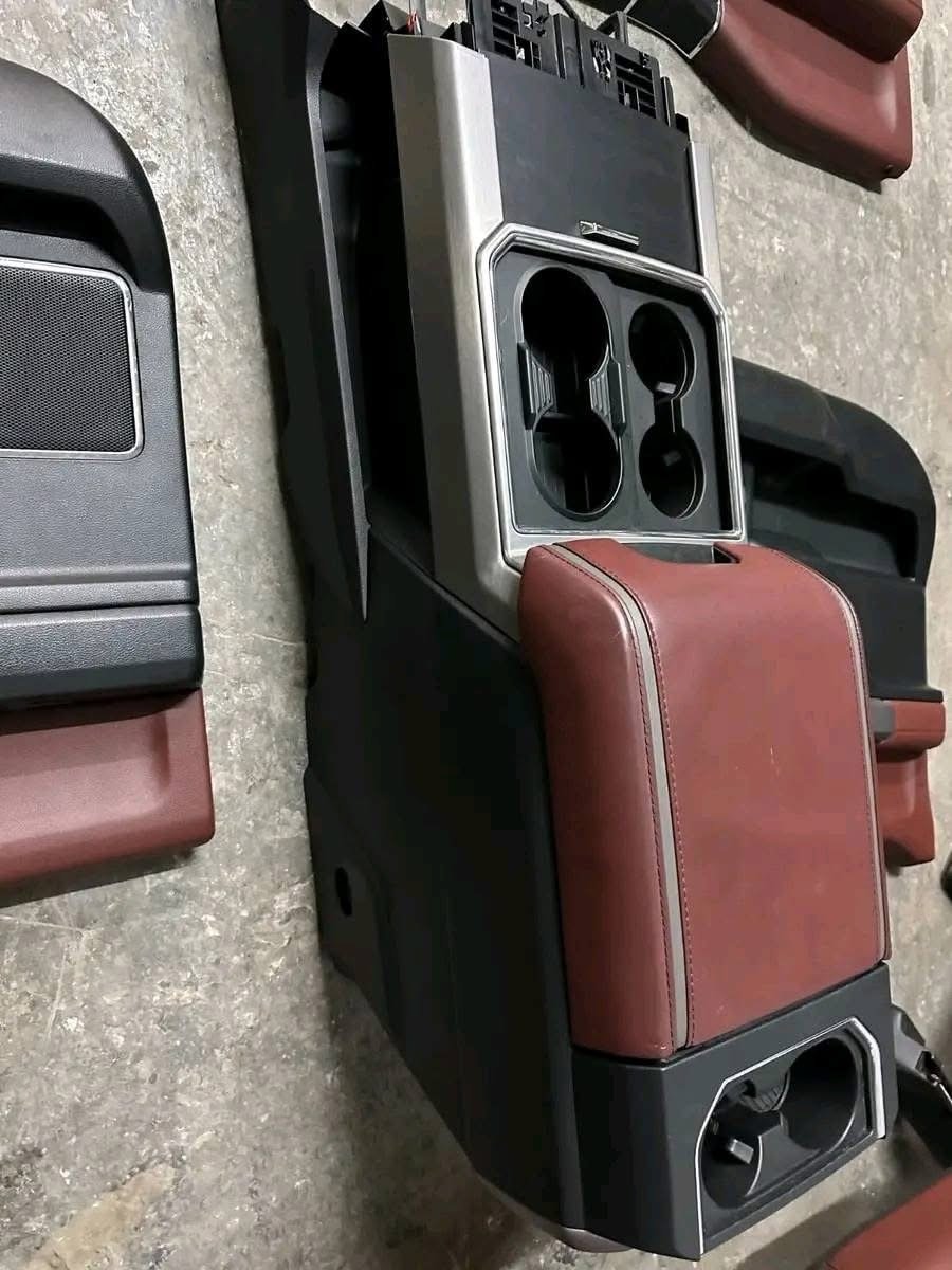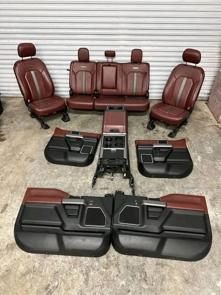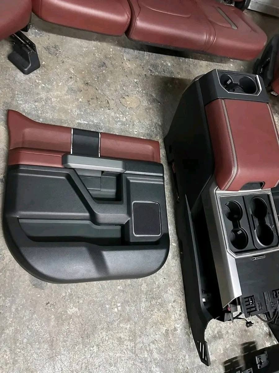 OEM full Platinum Red/Dark Marsala leather interior for F-250 / F-350 / F-450 (2017–2019).