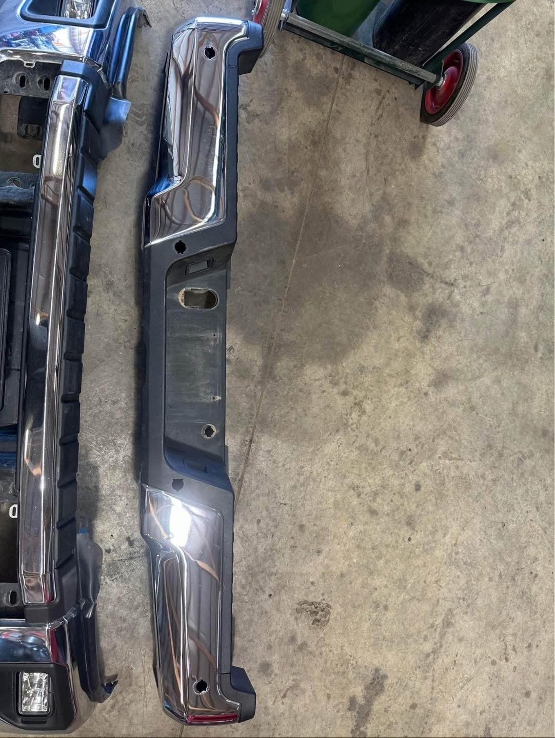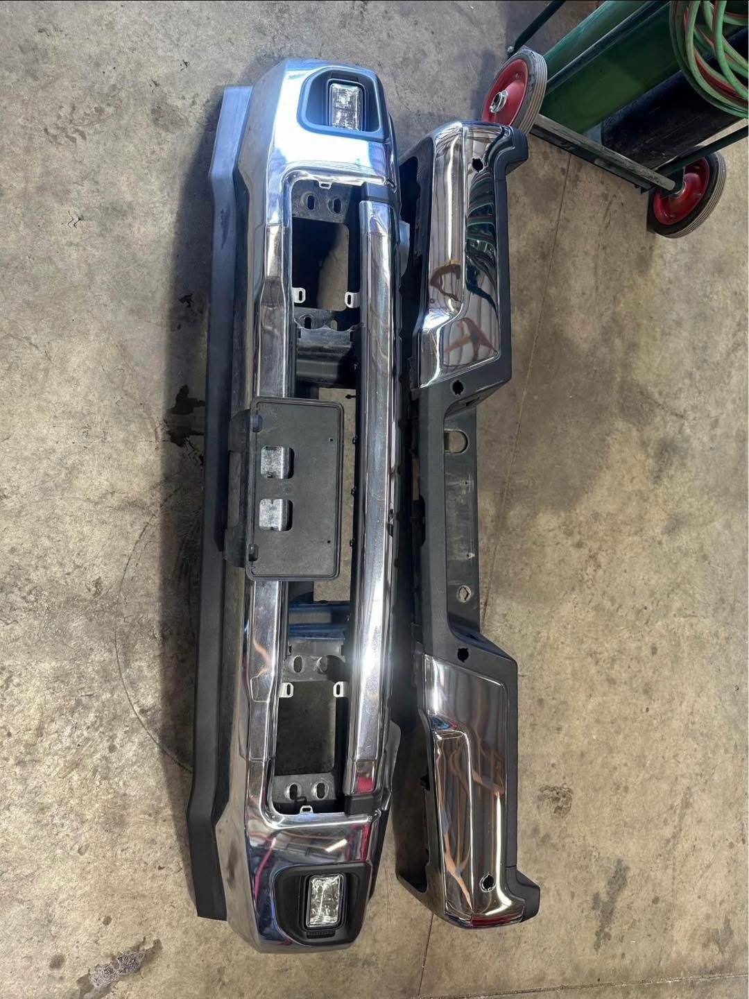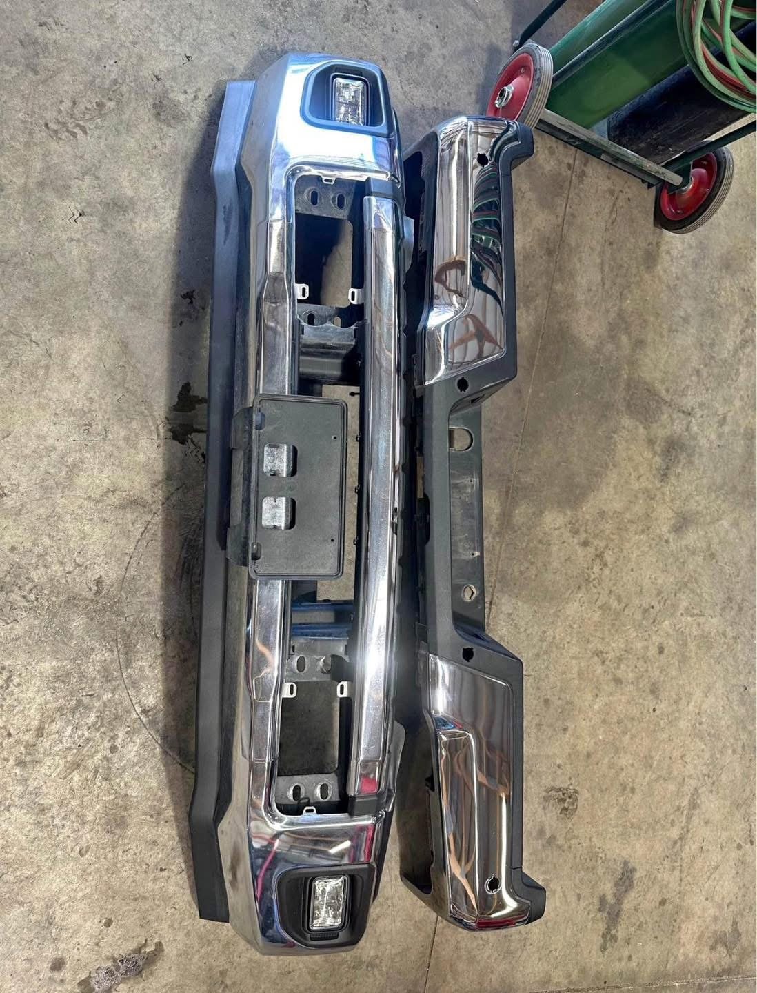 2017-22 f-250 and f-350. Fog lights remain in bumper, sensors not included in the rear. No dents or noticeable marks on bumpers.
