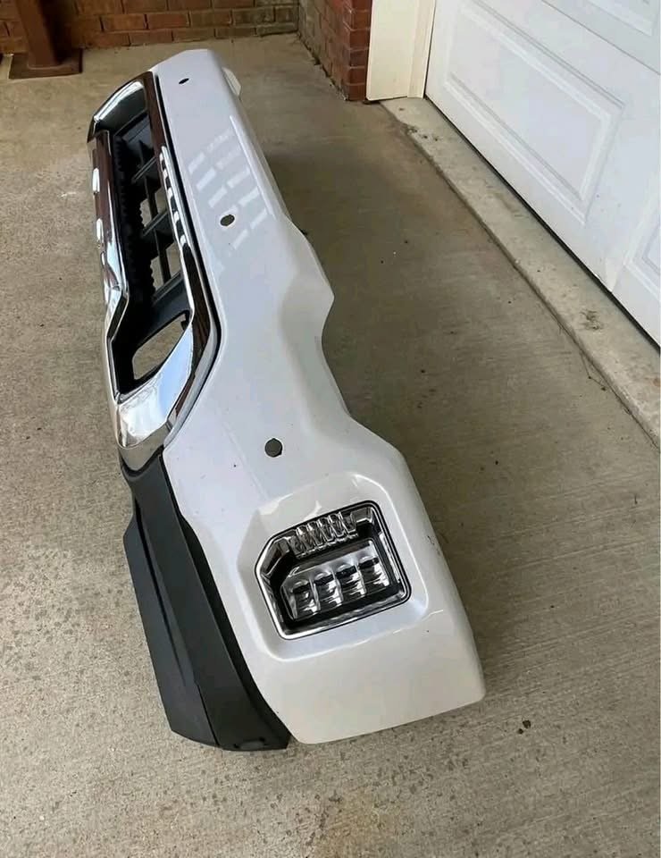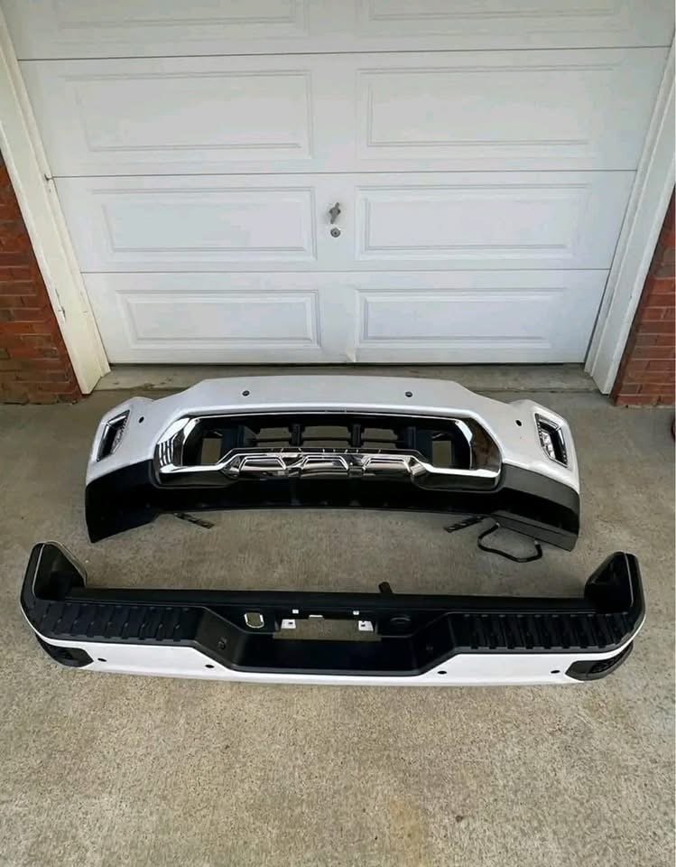 I Have A Complete Set Front & Rear Tri Coat White Bumpers fits 2021 GMC Denali 2500 HD. Front Bumper Is Complete Within Valance & LED Fog Lights/ Block Heater Plug Up Cord.