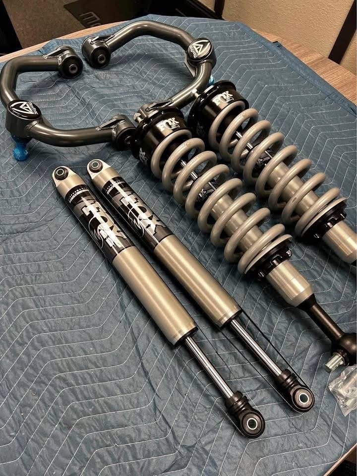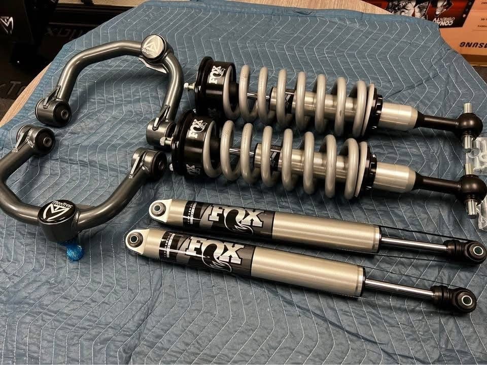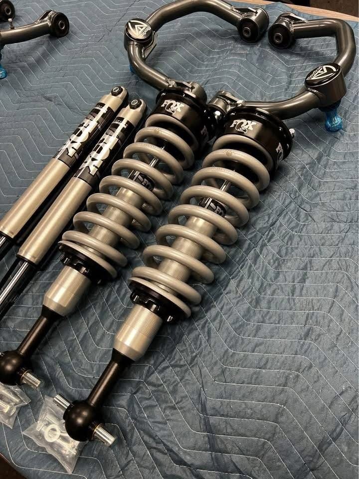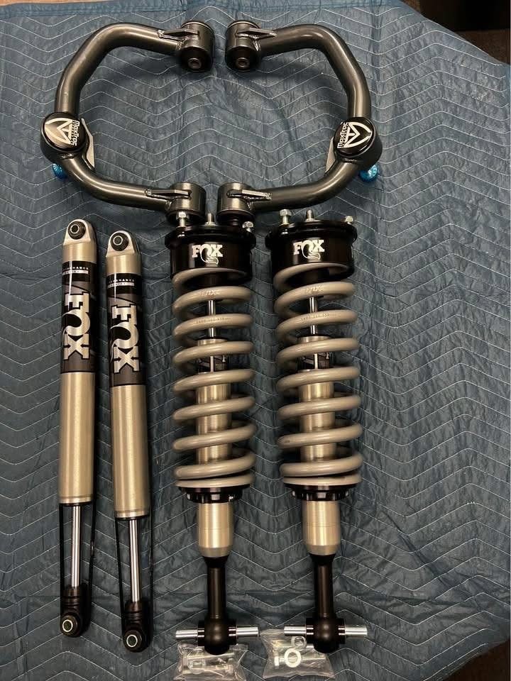 Brand new set of Fox 2.0 Series 0”-2.5” lift coilovers, Fox 2.0 rear shocks & Maxtrac tubular upper control arms. Fits 2021-2025 F150 2wd