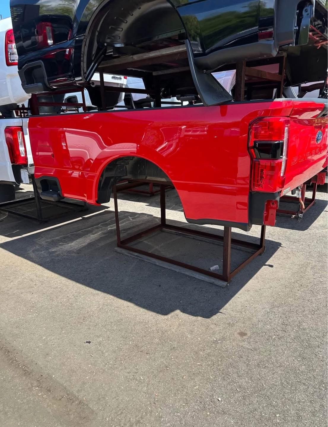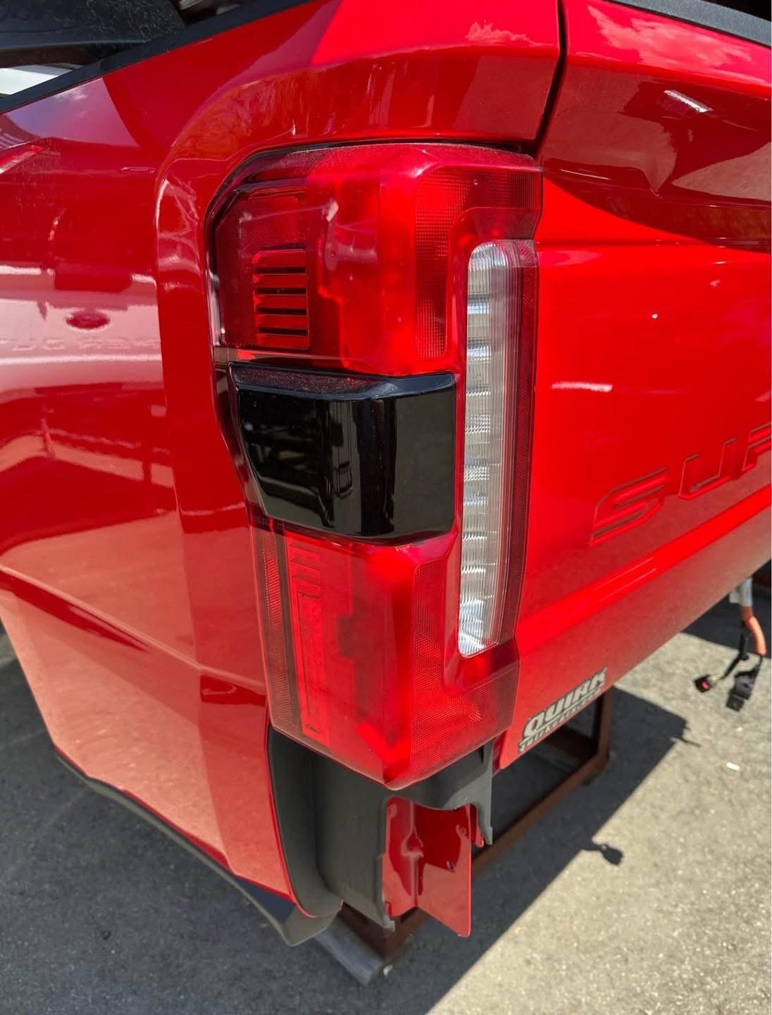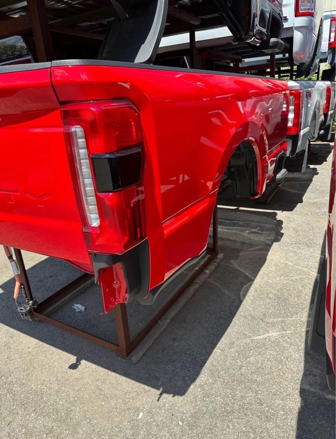 2025 Ford F250 takeoff bed. This has the bliss tail lights which are very expensive and the step down tailgate pan code is PQ red