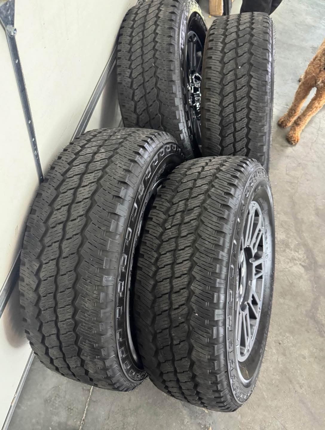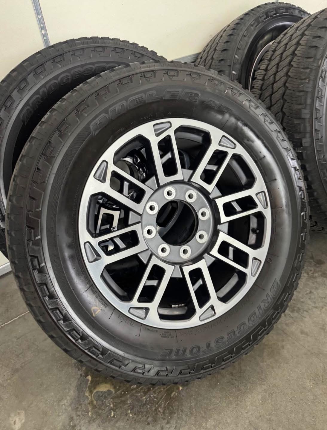 Tires are 275/65/20 Bridgestone dueler, all terrain, load range E, top of the line tires, no patches or plugs, tires have less then 2500 miles so they are basically brand new.