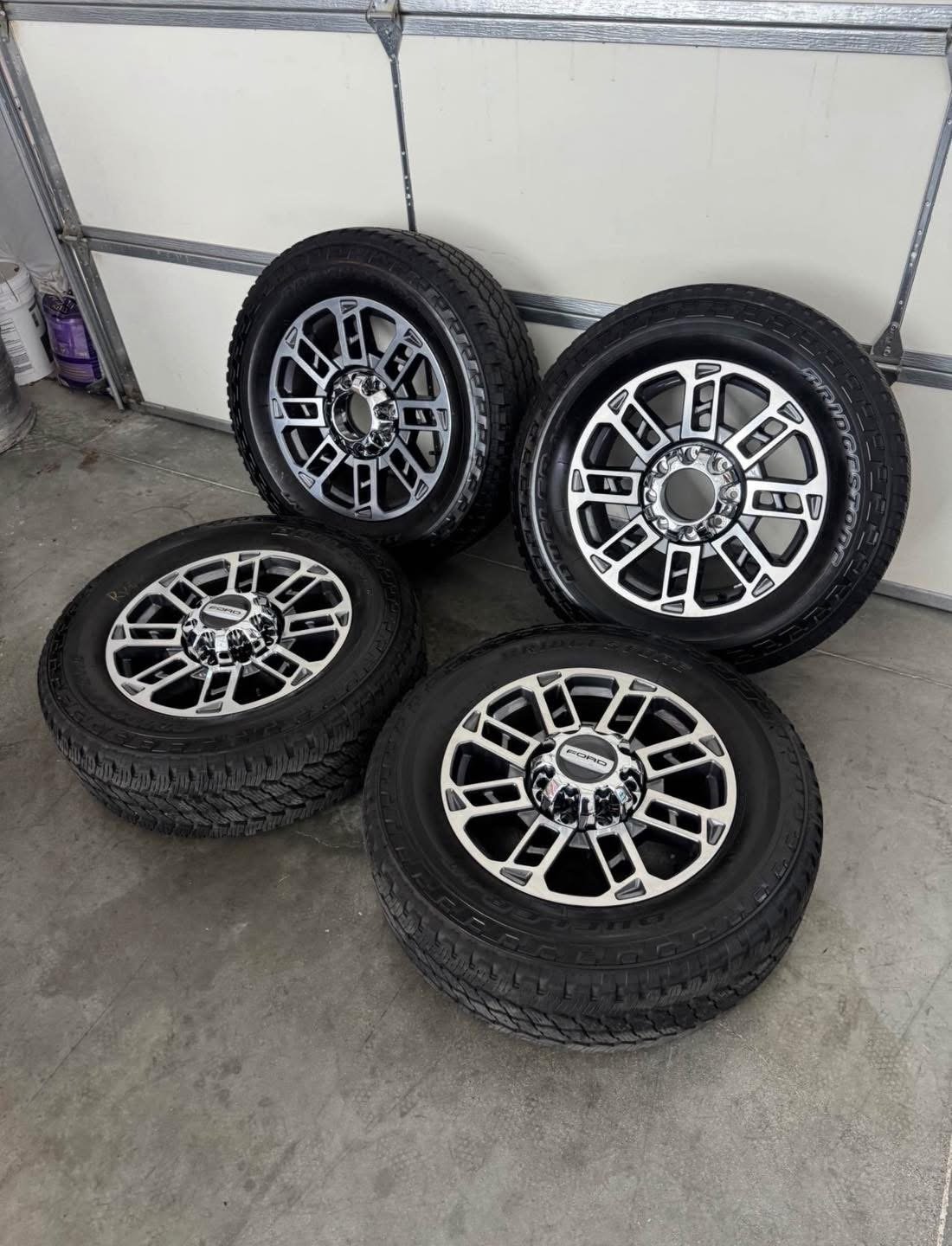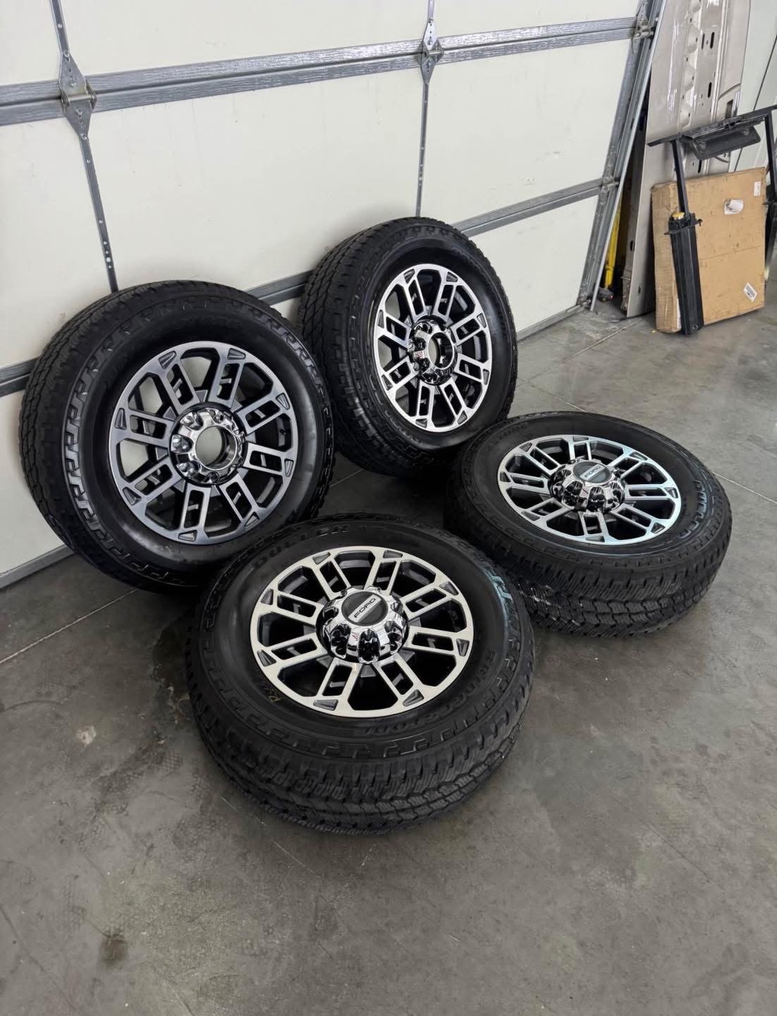 Wheels are 20in OEM wheels off a 2024 ford f350 limited package. Very hard to find wheels, especially anywhere near this price. Wheels are in perfect shape. No curb rash, dings or major damage on them, all the center caps are also included and in amazing shape as well.