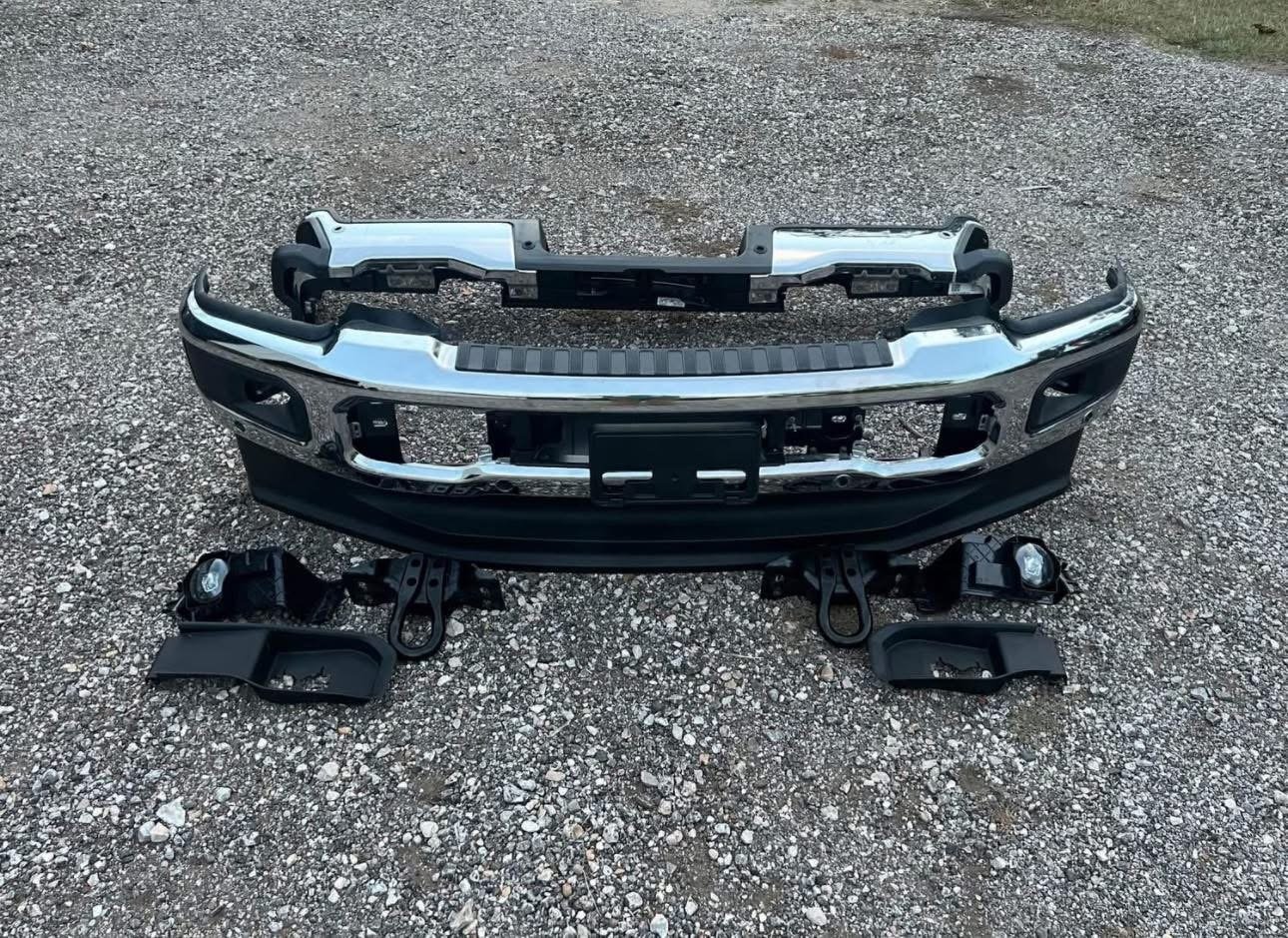 Brand new take off bumpers from 2025 King Ranch F250. Comes with tow hooks, Factory LED fog lights and mounting brackets. If you’re wanting to update the look of your super duty these will do it.