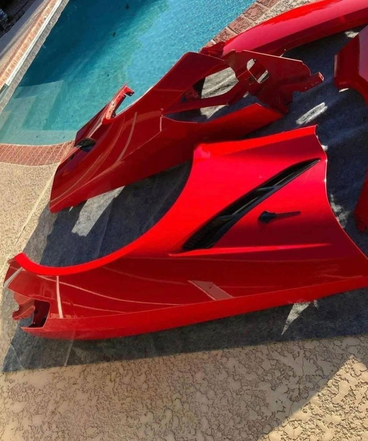 Front fenders and Rear quarter Panels for a red C7 Corvette available.