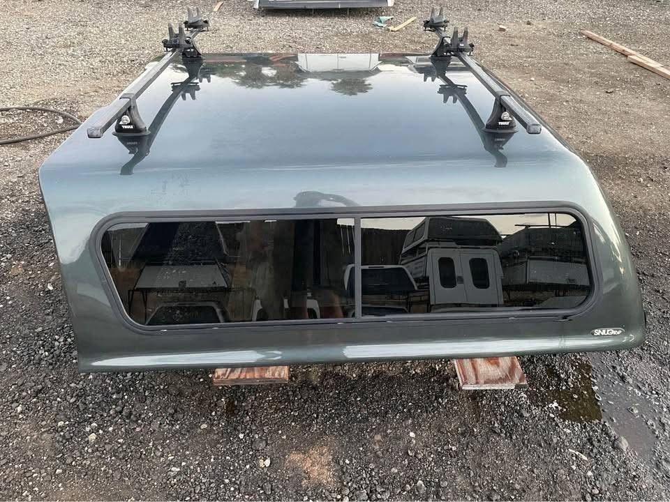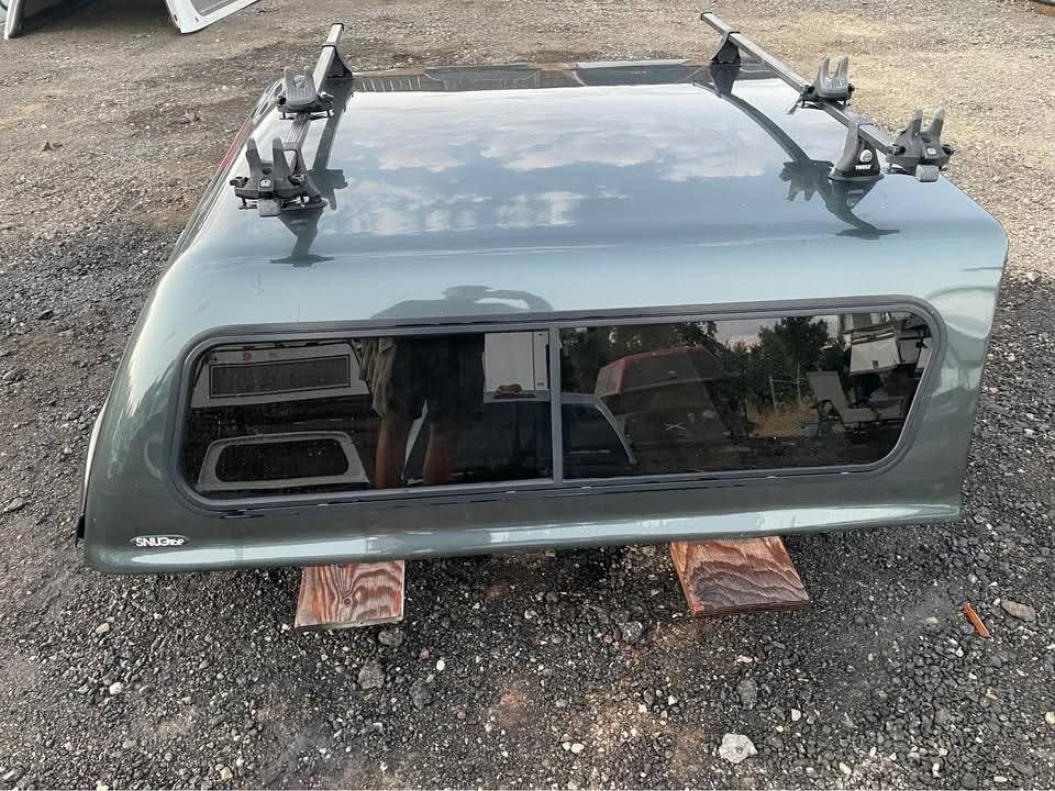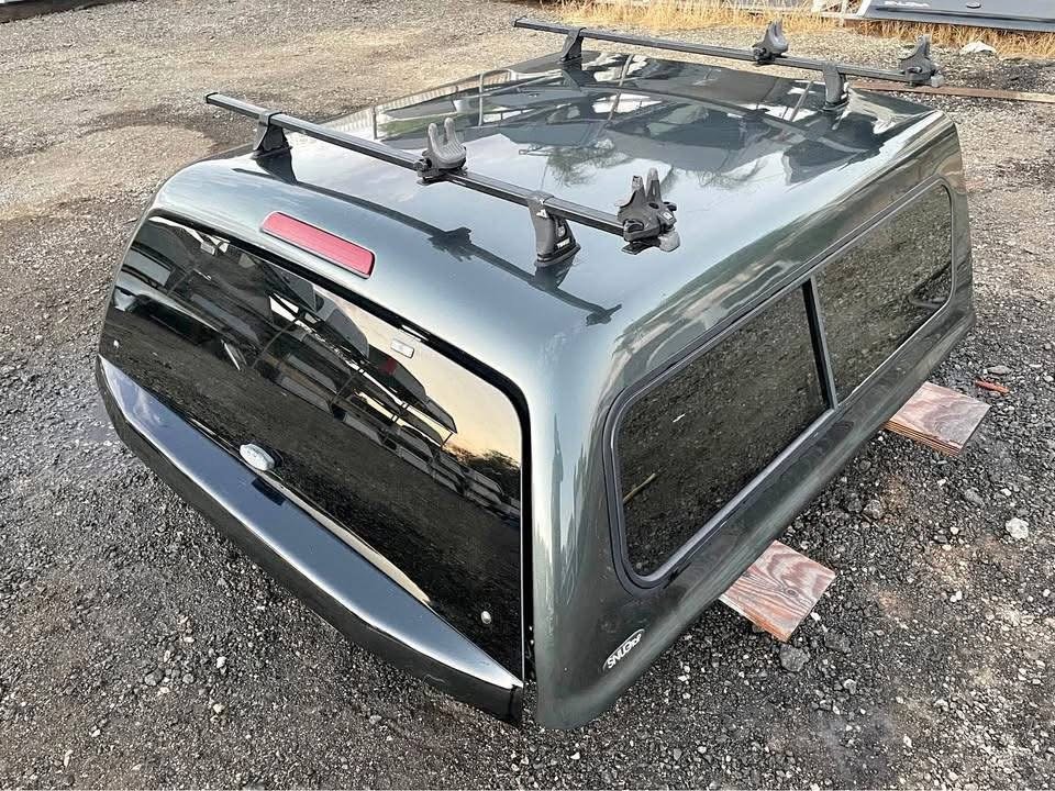 SNUG TOP REBEL model Camper shell that will fit any 2015- 2020 Ford F150 Crew Cab with a 5.5ft bed, special features include a traditional design cab hi level (Fuel Saving Aerodynamic Styling) other features includes a Guard Metallic paint code (HN) , other features includes a full frameless all glass rear door with a single twist lock Side slider 50/50 with screen protectors , Rap Rails to give it a cleaner OEM look ,carpet Headliner ,front tilt down slider window , and a built inn 3rd rear L.E.D brake light.