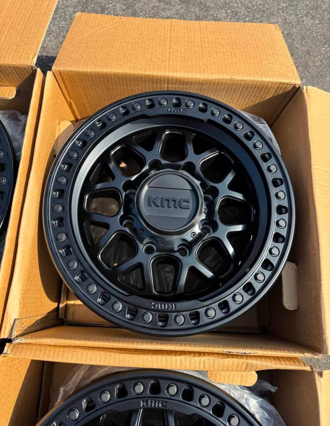 – *KMC GRS Off-Road Racing Wheels*: Satin black finish, 17×9 size