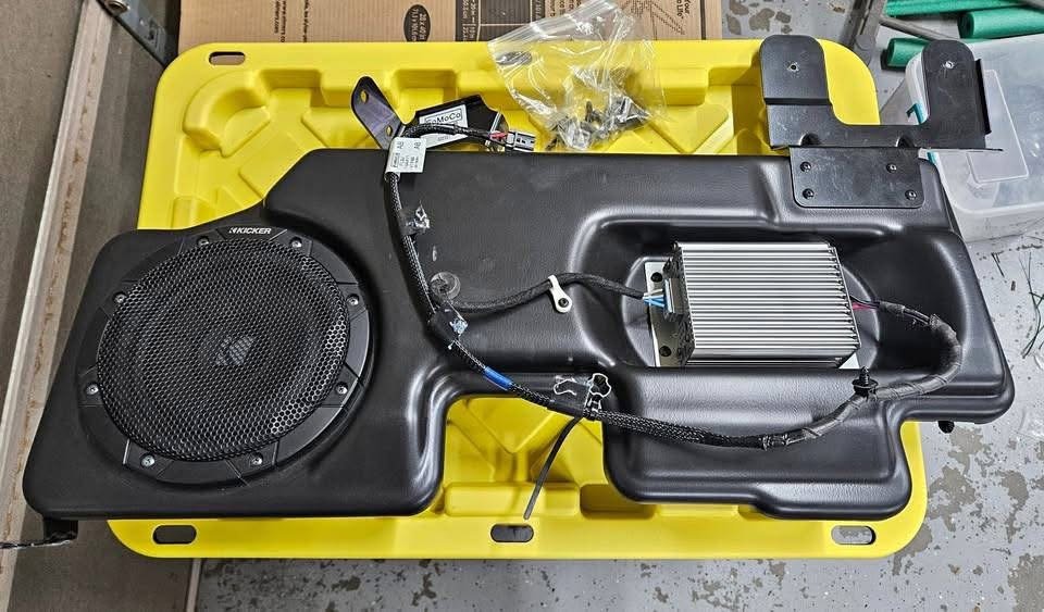 OEM F-150 Supercrew Kicker subwoofer upgrade kit, includes 100w amplifier, wiring harness and all hardware available to install. Basically new,