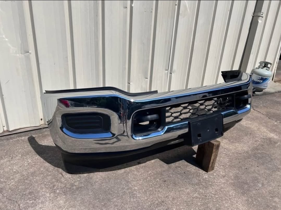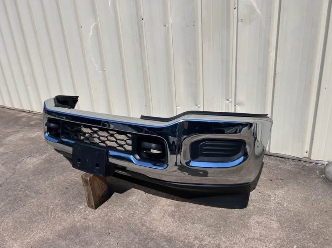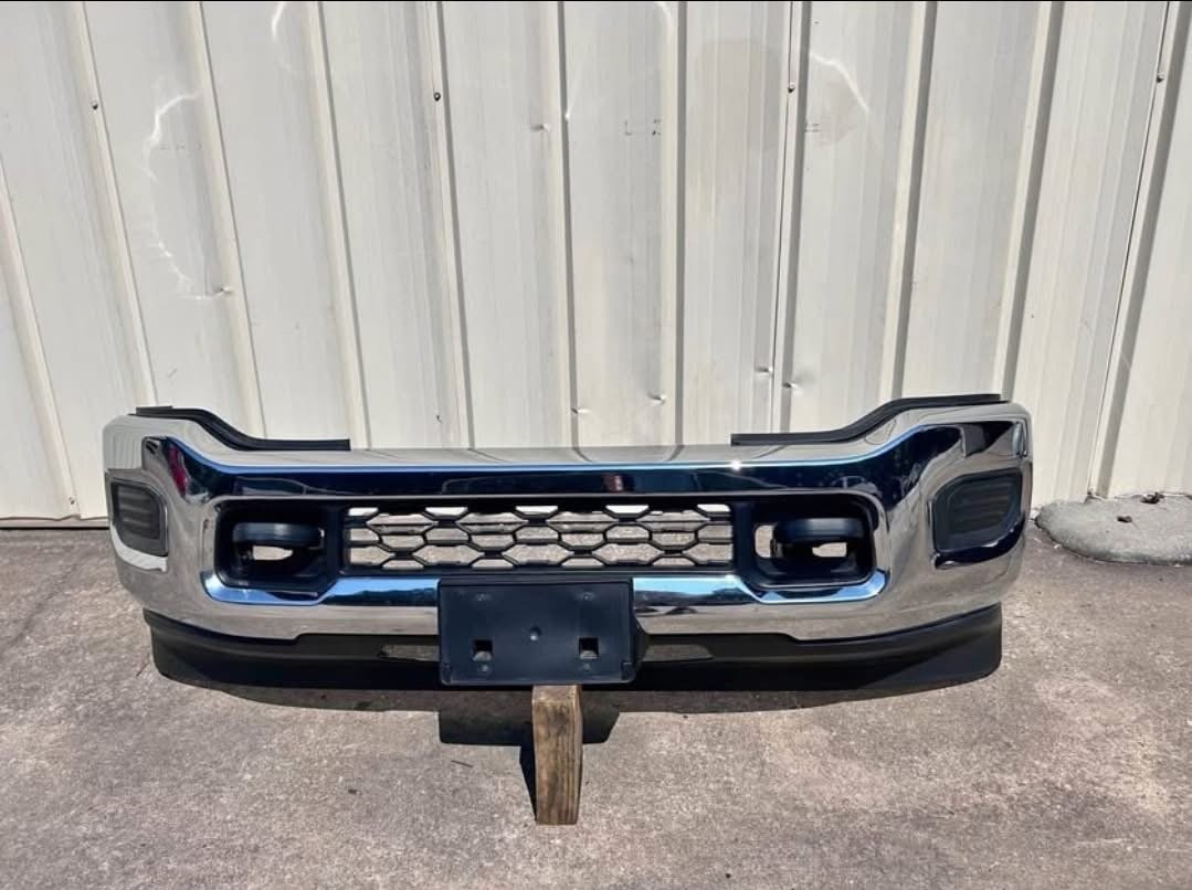 Ram 2500 Bumper Front 2019-2023 Complete Dodge 3500 HD Heavy Duty Oem Chrome. Used condition with normal wear. Compete with all brackets and valance. No park sensors or fog lights. Comes with tow hooks. Chrome.